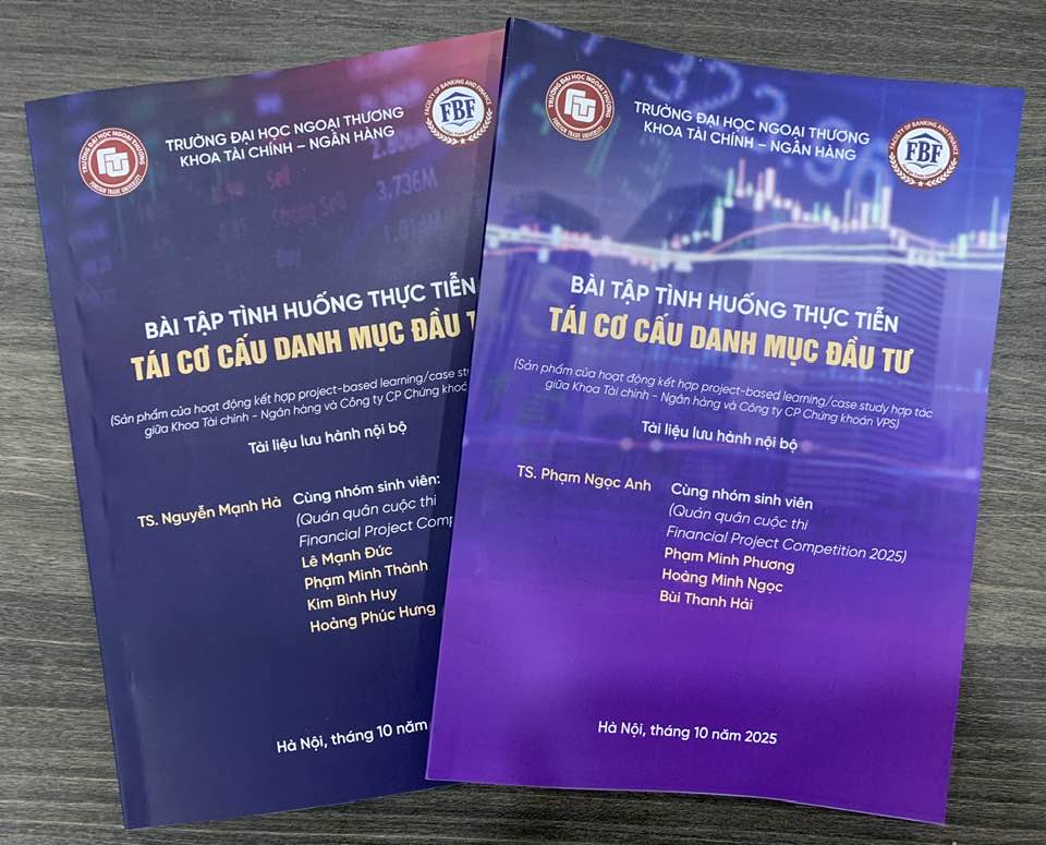 Tiêu biểu là bài tập tình huống “Tái cơ cấu danh mục đầu tư”, được xây dựng trên cơ sở phương án tư vấn đầu tư của 2 nhóm sinh viên đạt Giải Nhất cuộc thi Financial Project Competition (FPC) 2025, đã được hội đồng chuyên môn thẩm định, đảm bảo tính học thuật và độ tin cậy cao. Các case studies này có thể sử dụng cho nhiều học phần như Quản trị danh mục đầu tư, Phân tích và đầu tư chứng khoán, Tài chính cá nhân ứng dụng, góp phần giúp bài giảng trở nên sinh động, sát thị trường và nâng cao năng lực tư duy, kỹ năng ra quyết định cho sinh viên.