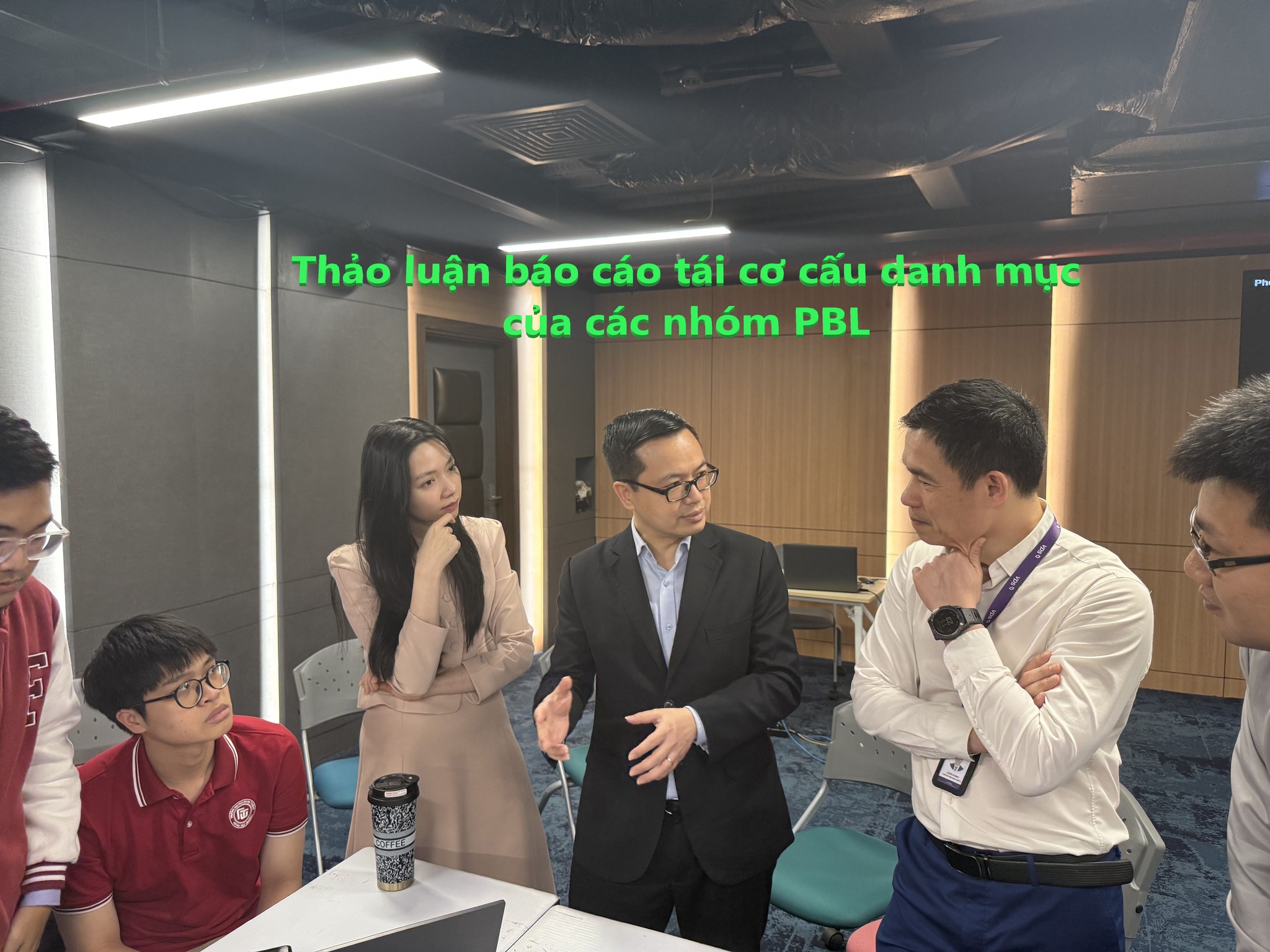 Thay vì tách rời hoạt động giảng dạy và trải nghiệm thực tế, Khoa TCNH kết hợp Project-Based Learning (PBL) của sinh viên tại doanh nghiệp với quá trình xây dựng học liệu. Theo đó, sinh viên tham gia các dự án quản lý danh mục đầu tư gắn với bối cảnh thị trường thực, giảng viên cùng sinh viên trực tiếp trải nghiệm, thu thập thông tin, phân tích và đề xuất giải pháp, từ đó chắt lọc và chuẩn hóa thành các case studies phục vụ giảng dạy. Đây là mô hình 2-in-1, vừa hỗ trợ sinh viên thực hiện project sát thực tiễn, vừa tạo ra học liệu chất lượng cao cho các học phần chuyên ngành.